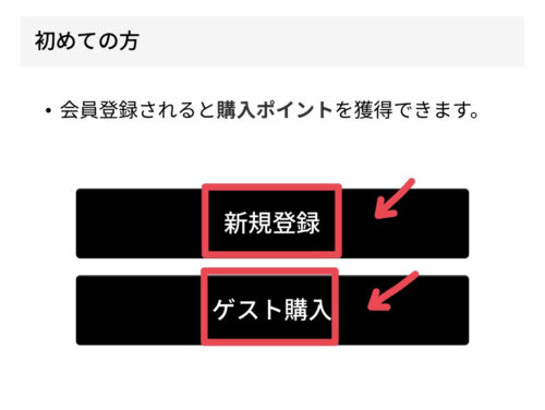 「新規会員登録」または「ゲスト購入」のいずれかをお選びいただけます。