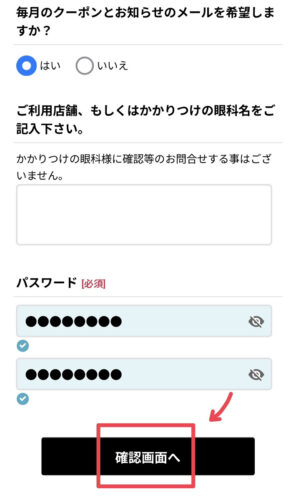 お名前・ご住所・ご連絡先などを入力し、「確認画面へ」を押します。