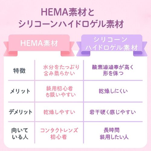 - ヘマ素材(ハイドロゲル):柔らかく扱いやすく初心者におすすめ。