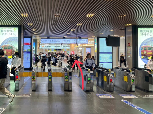 ② 正面に「新幹線のりば(中央口)」が見えてきます。