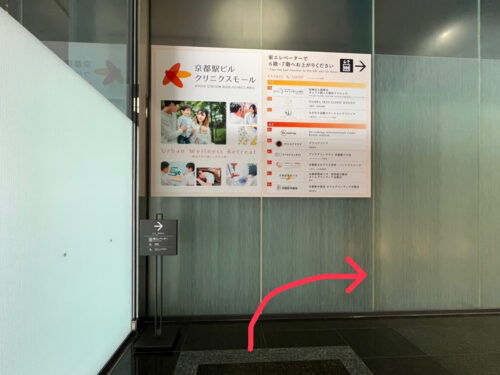 ⑧ 突き当たりまで進むと「京都駅ビルクリニクスモール」のポスターがあり、